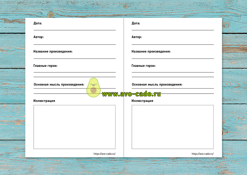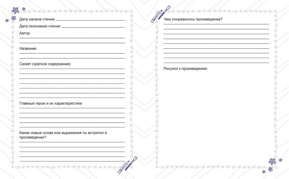 В нём ученик делает записи о названии книги, авторе, главных героях, событиях и основной идее произведения.