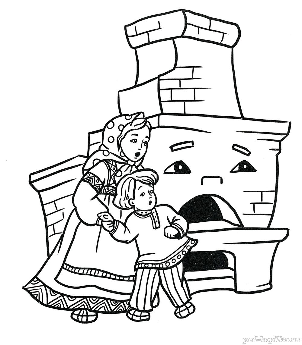 Бежала, бежала, видит — стоит в поле печка. Маша к ней: