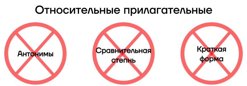 Они употребляются для обозначения признака предмета. При этом его невозможно иметь в большей или меньшей степени. К разряду относительных относятся слова со следующими лексическими значениями:
