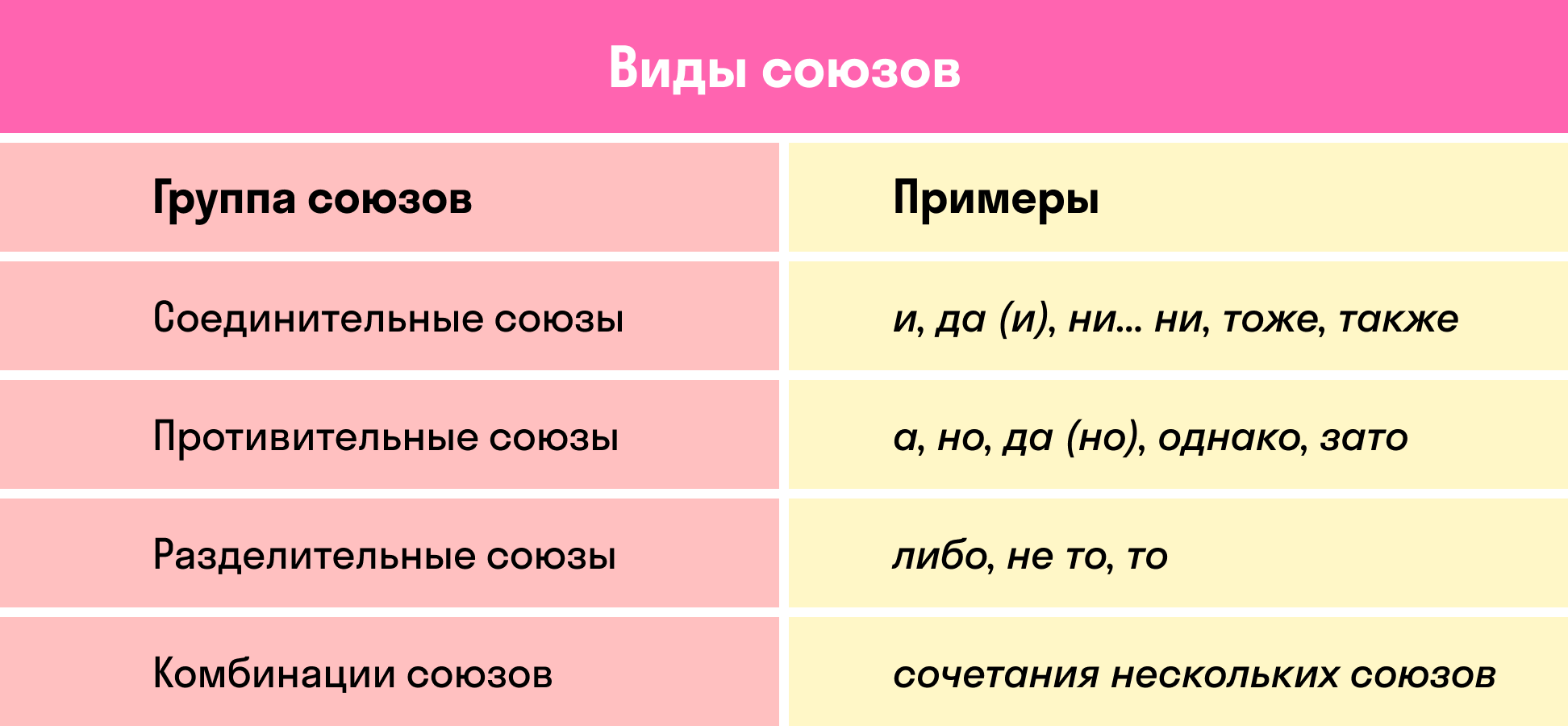 Рассмотрим каждый вид союзов в ССП на примерах.
