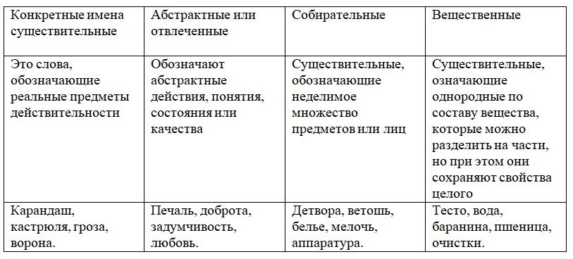 В зависимости от значения нарицательные существительные разделяются на целые лексико-грамматические разряды.