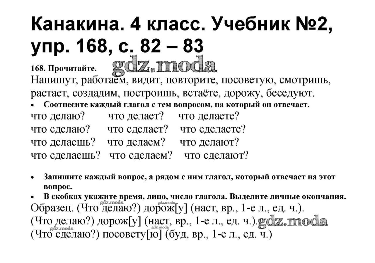 ГДЗ решение к заданию № 168 Русский язык 4 класс Канакина В. Просвещение 2015 Часть 1, Часть 2 ФГОС бесплатно на гдз. мода!