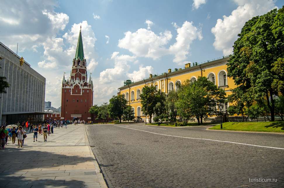 Напротив Арсенала, на правой стороне Троицкой площади находится Государственный Кремлевский дворец. Исторический облик Кремля был разбавлен в 1959-1961 году. Именно в эти годы на территории Московского Кремля появилось здание Дворца съездов.