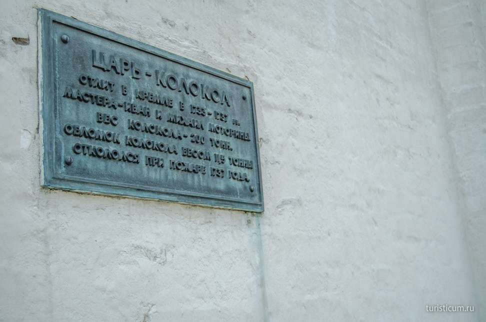 Как и Царь-пушка, Царь-колокол является выдающимся памятником русского литейного искусства, но уже XVIII века. Отлит он по приказу императрицы Анны Иоанновны. Вес колокола без малого 202 тонны, поэтому Царь-колокол отливали неподалеку от того места где он стоит сейчас. К востоку от звонницы, на Ивановской площади специально для его отлива была вырыта яма глубиной 10 метров.
