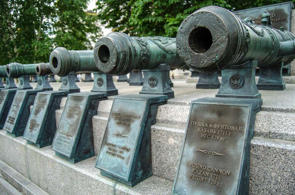 Дальше дорога уводит нас в сквер Троицкой площади, где можно отдохнуть от полуденного зноя и полюбоваться артиллерийскими экспонатами XVII века.