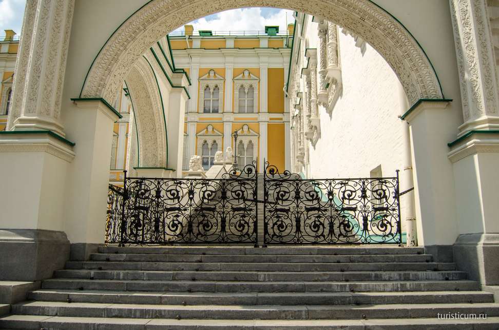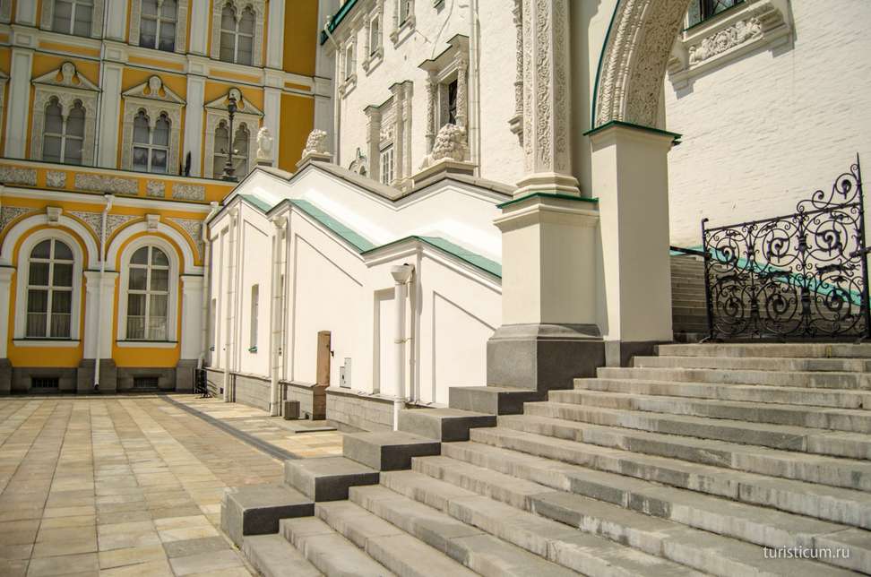 С южной стороны Грановитой палаты расположена лестница – Красное крыльцо. Оно использовалось для выхода царя к народу и для прохода процессии в Успенский собор в день коронации. Последняя процессия по этой лестнице прошла с Николаем II в 1896 году.
