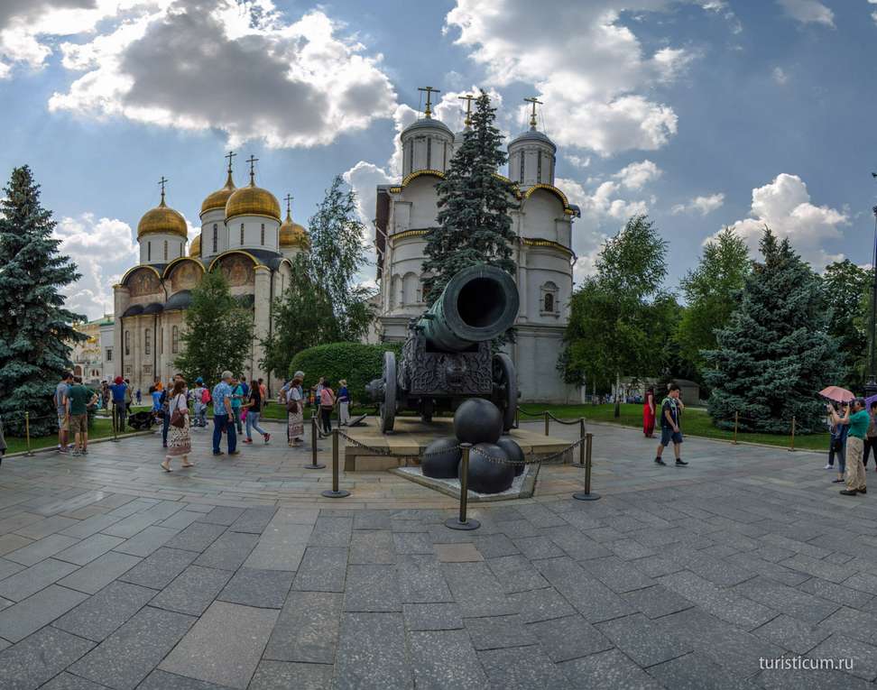 Отсюда можно повернуть направо и оказаться на самой Соборной площади, но мы пройдем немного вдоль Ивановской площади. Здесь одна за другой нас ждут две очень любопытные достопримечательности. Это Царь-пушка и Царь-колокол. Сначала про Царь-пушку.