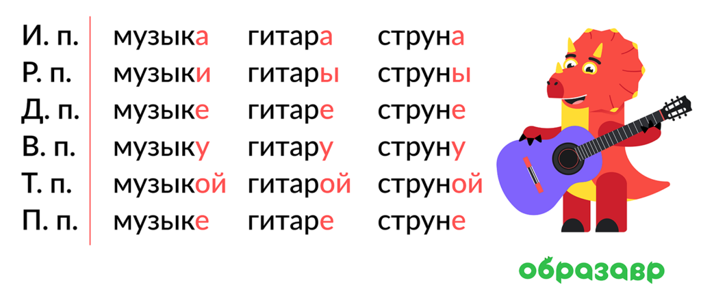 Приведем таблицу «Склонение существительных по падежам с окончаниями»: