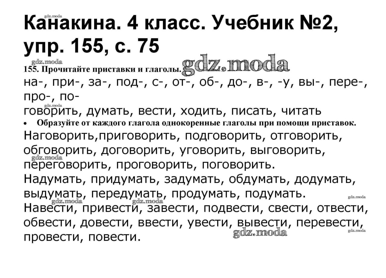 ГДЗ решение к заданию № 155 Русский язык 4 класс Канакина В. Просвещение 2015 Часть 1, Часть 2 ФГОС бесплатно на гдз. мода!