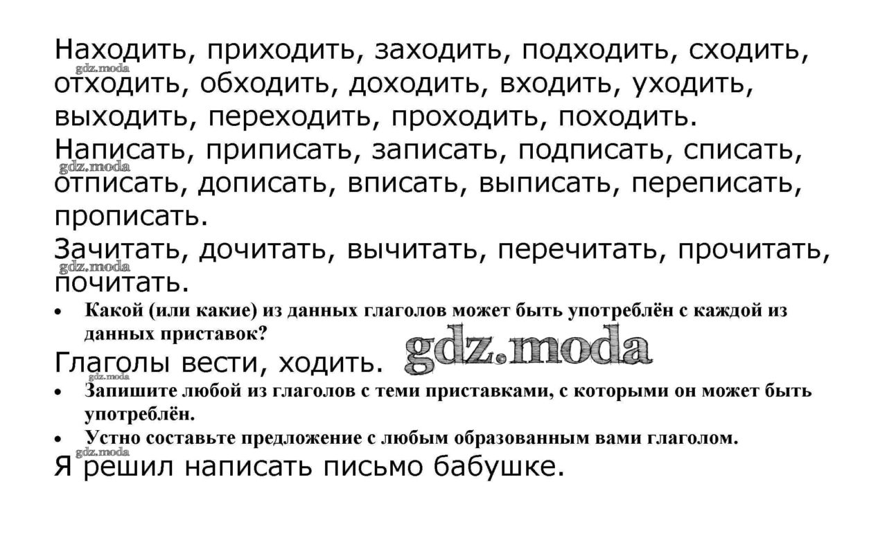 − Запишите любой из глаголов с теми приставками, с которыми он может быть употреблён. − Устно составьте предложение с любым образованным вами глаголом.