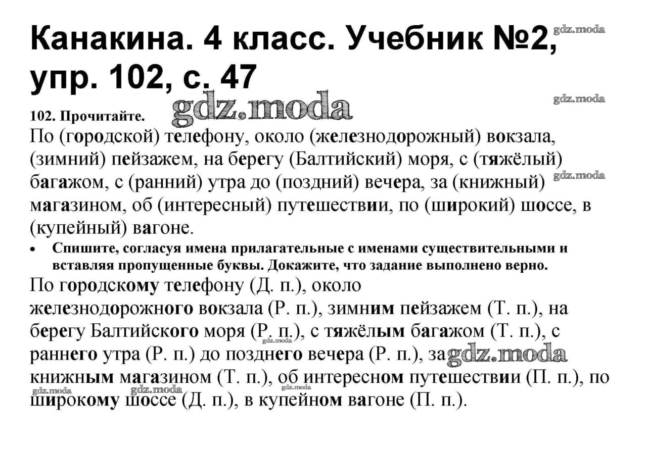 ГДЗ решение к заданию № 102 Русский язык 4 класс Канакина В. Просвещение 2015 Часть 1, Часть 2 ФГОС бесплатно на гдз. мода!