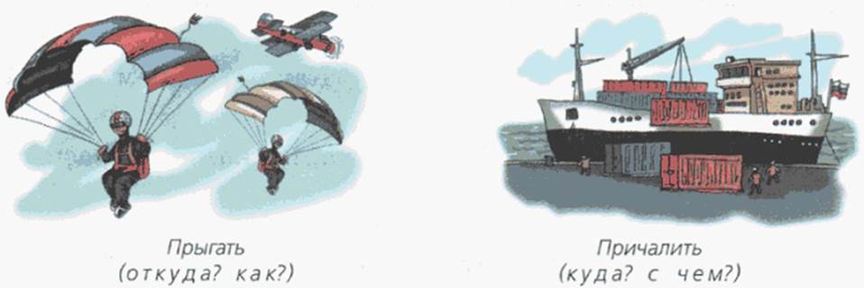 Подберите к главным словам, данным под картинками, другие, зависимые слова, чтобы более точно обозначить изображённые на рисунках действия.