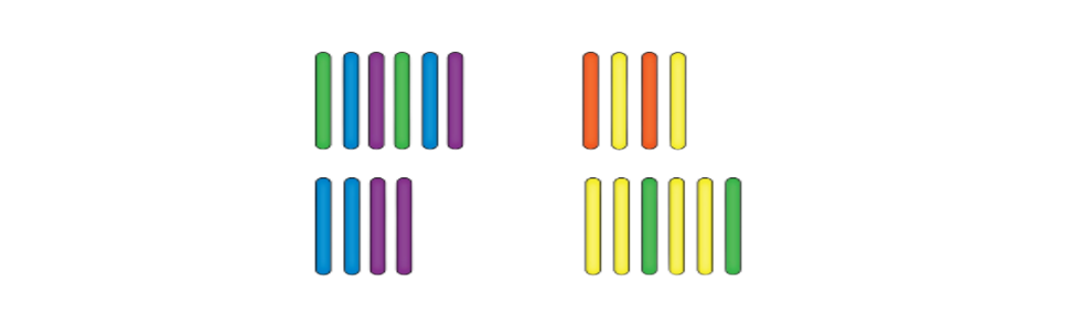 На рисунке ниже изображены счётные палочки:По вертикали они условно разделены на два столбика. Левый столбик содержит 6 палочек вверху и 4 палочки внизу. В правом столбике — 4 палочки вверху и 6 палочек внизу.