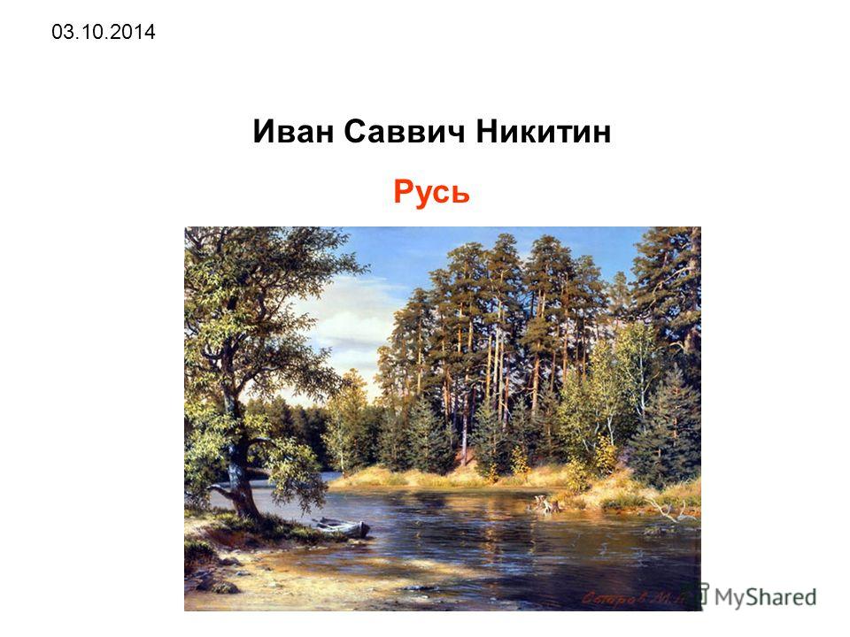 «Русь» – первое стихотворение, которое было напечатано и сразу сделало поэта известным. Первый сборник стихов вышел в 1856 году. Главные темы в поэзии Никитина — родная природа, беспросветная жизнь крестьян и крестьянский труд, страдания городской бедноты, протест против несправедливого устройства жизни.