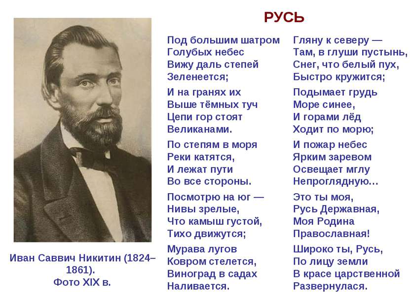 Презентация “Стихотворение И.С. Никитина «Русь» – гимн отчей земле”