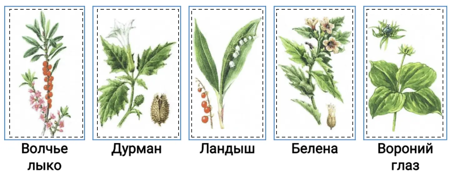 Чтобы избежать отравления, важно знать, как выглядят эти растения и грибы (см. задание 2)