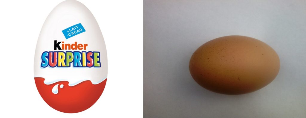 - Яйцо (куриное и шоколадное). Все, что производят животные в процессе своей жизнедеятельности, является частью природы. Если же речь идет о шоколадных яйцах, например, о «Киндер Сюрпризе», то это уже будет считаться частью рукотворного мира, поскольку продукт был создан человеком.