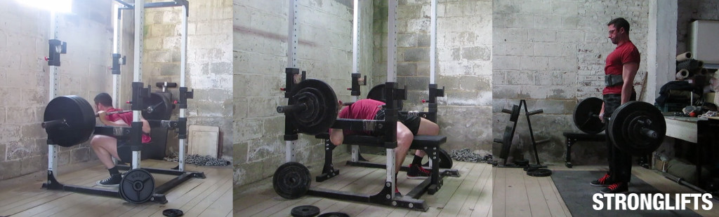 Бывает, что при таком быстром темпе увеличения нагрузки, тело не успевает, как следует, восстановиться и выполнять упражнения становится все тяжелее и тяжелее. Если не удается сделать качественно пять подходов по пять повторений с рабочим весом, в таком случае вес добавлять нельзя. В следующий тренировочный день повторить упражнение с этим же весом. И только когда получится выполнить трудный вес все необходимые подходы с нужным количеством повторений без промедлений, то только после такого тренировочного дня на следующий можно добавлять блины. Это касается каждого упражнения отдельно, то есть в приседе добавлять или нет — зависит от ситуации, также в жиме лежа или в упражнении становая тяга и прочих тоже.