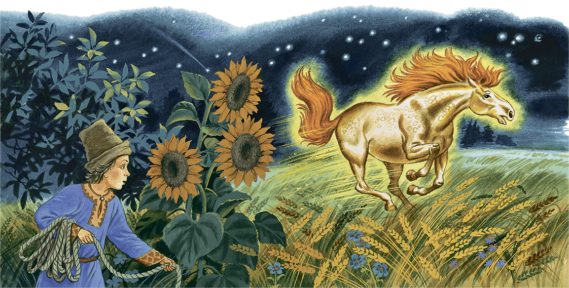 Утром Иван домой вернулся и все честно рассказал, как он коня поймал. А домашние ему не поверили и посмеялись над ним. Но пшеницу больше никто не воровал по ночам.