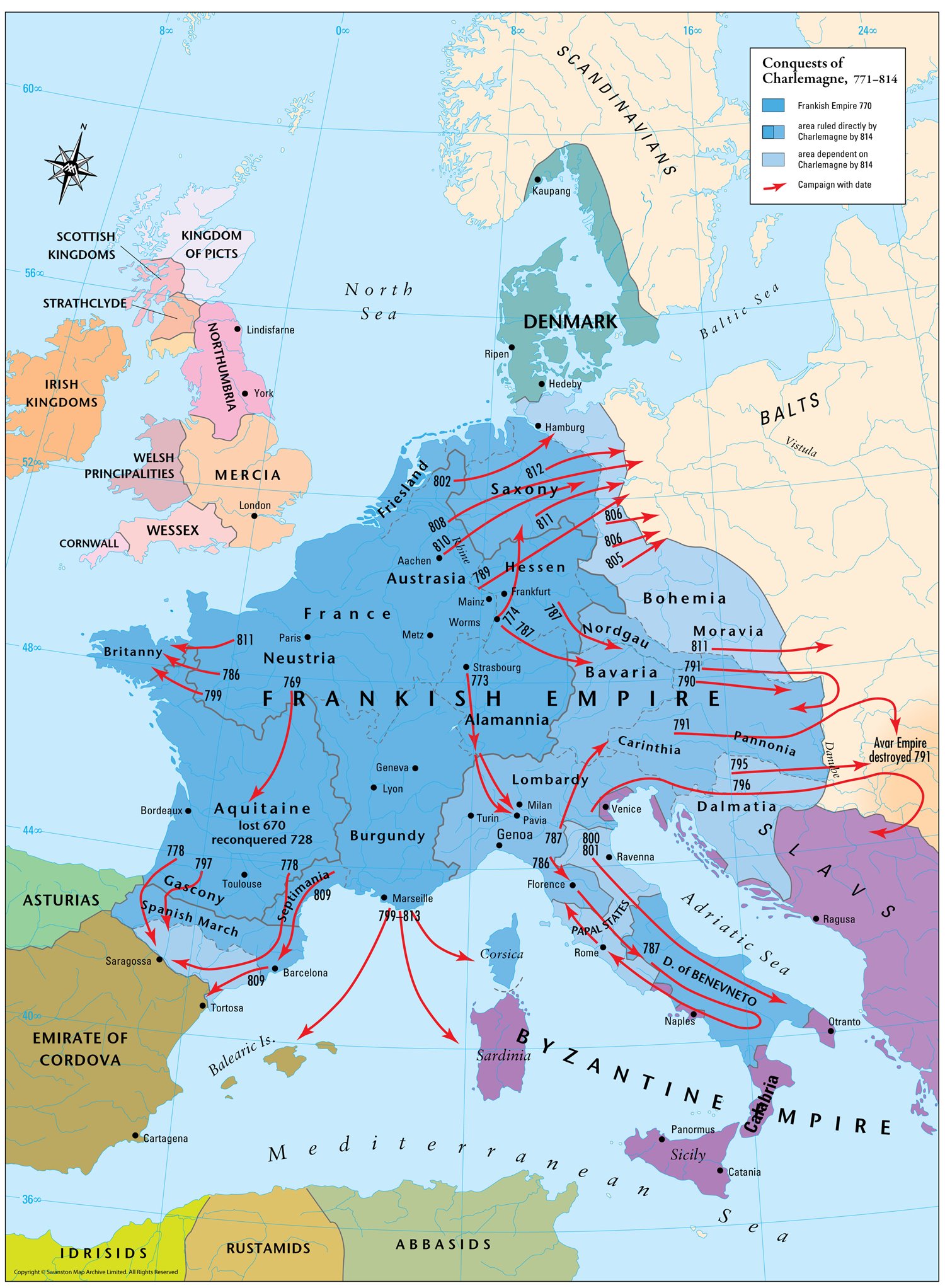 Образование империи стало важнейшим событием для Западной Европы, объединившим монаршую власть и церковь, укрепив влияние франкийского государства.