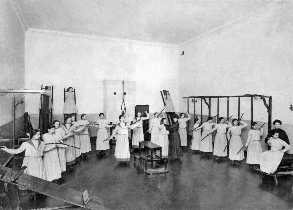 Порядки в российских женских институтах не слишком отличались от того, что описывала Шарлотта Бронте в романе «Джейн Эйр» — разве что кормили девушек получше и телесных наказаний к ним не применяли. Подробное описание режима смолянок оставила Елизавета Водовозова: