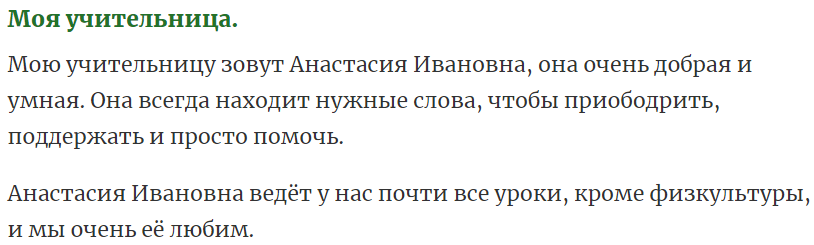 Моя учительница. Можно рассказать, как зовут учительницу, о ее чертах характера, которые любят дети, о предметах, которые она преподае