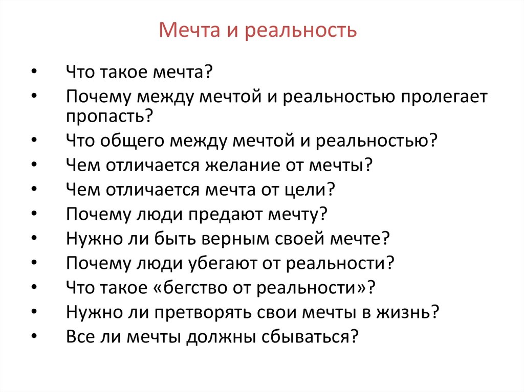 между мечтой и реальностью?Чем отличается