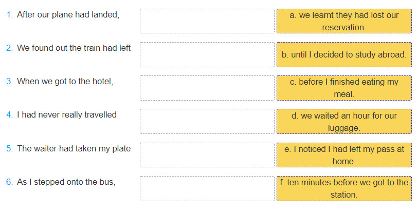 1-d. After our plane had landed, we waited an hour for our luggage.