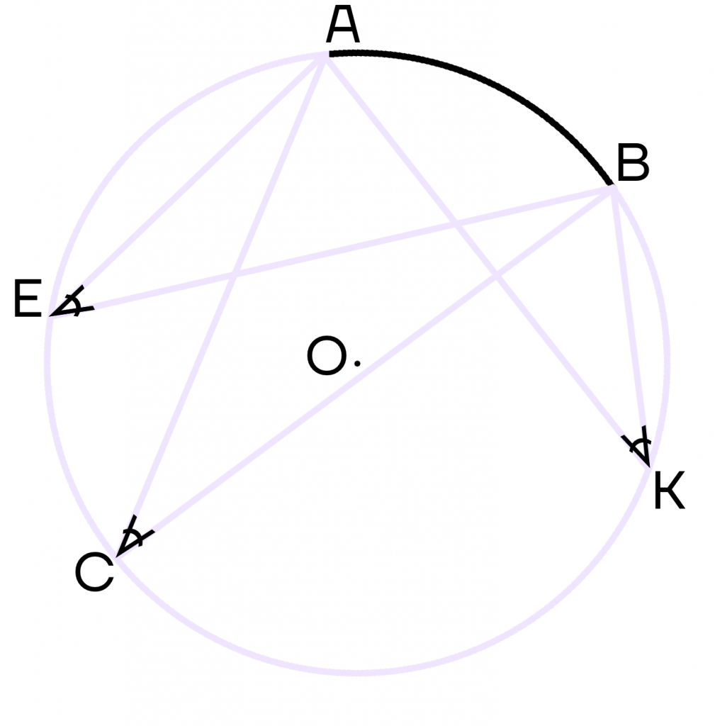 Задание 5. Вписанный угол равен 50 градусов. Чему равен центральный угол, опирающийся на ту же дугу?