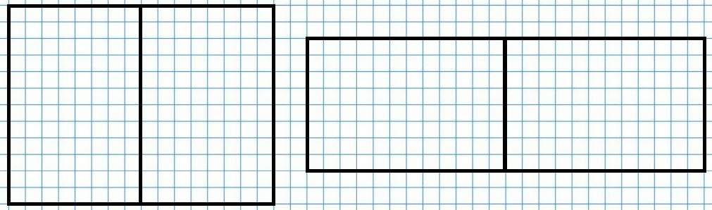 9. Начерти на клетчатой бумаге и вырежи прямоугольник и два треугольника, как на чертеже.