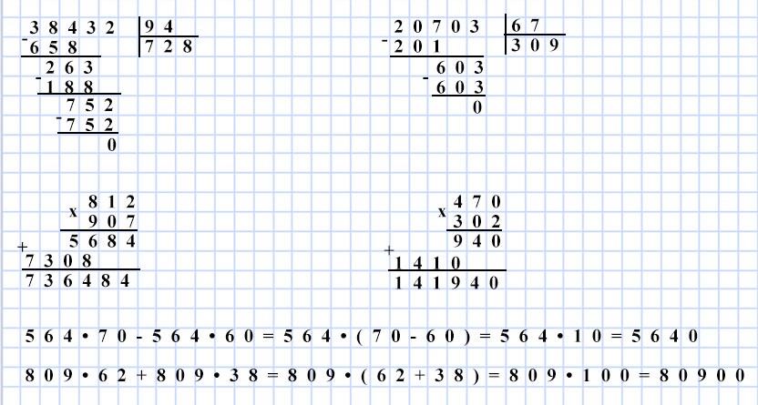 Четыре арифметических действия: сложение, вычитание, умножение, деление: