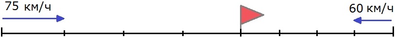 75 • 4 + 60 • 4 = 300 + 240 = 540 (км) − прошли оба поезда или расстояние между городами
